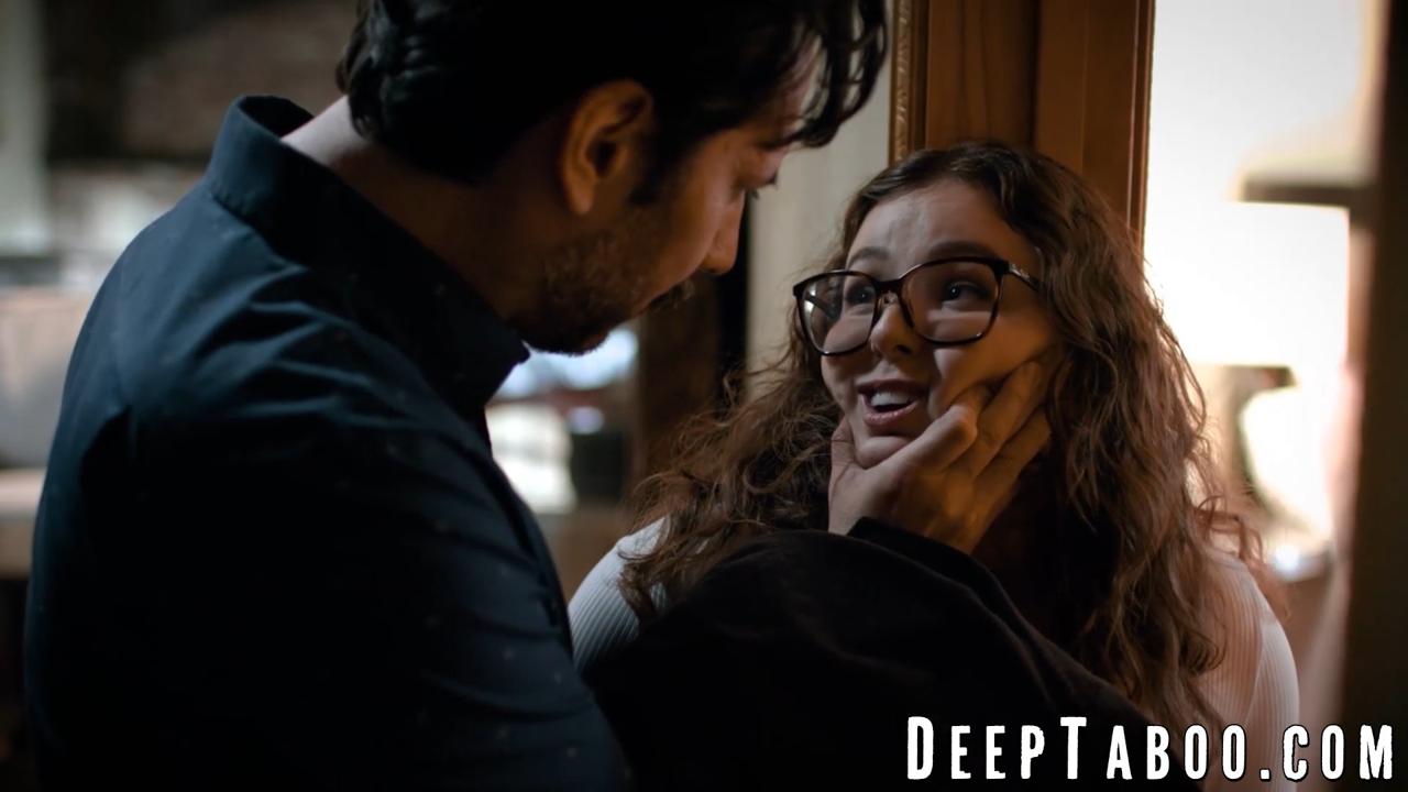 Innocent brunette teen Leana Lovings seduces teacher, gives him a deepthroat BJ