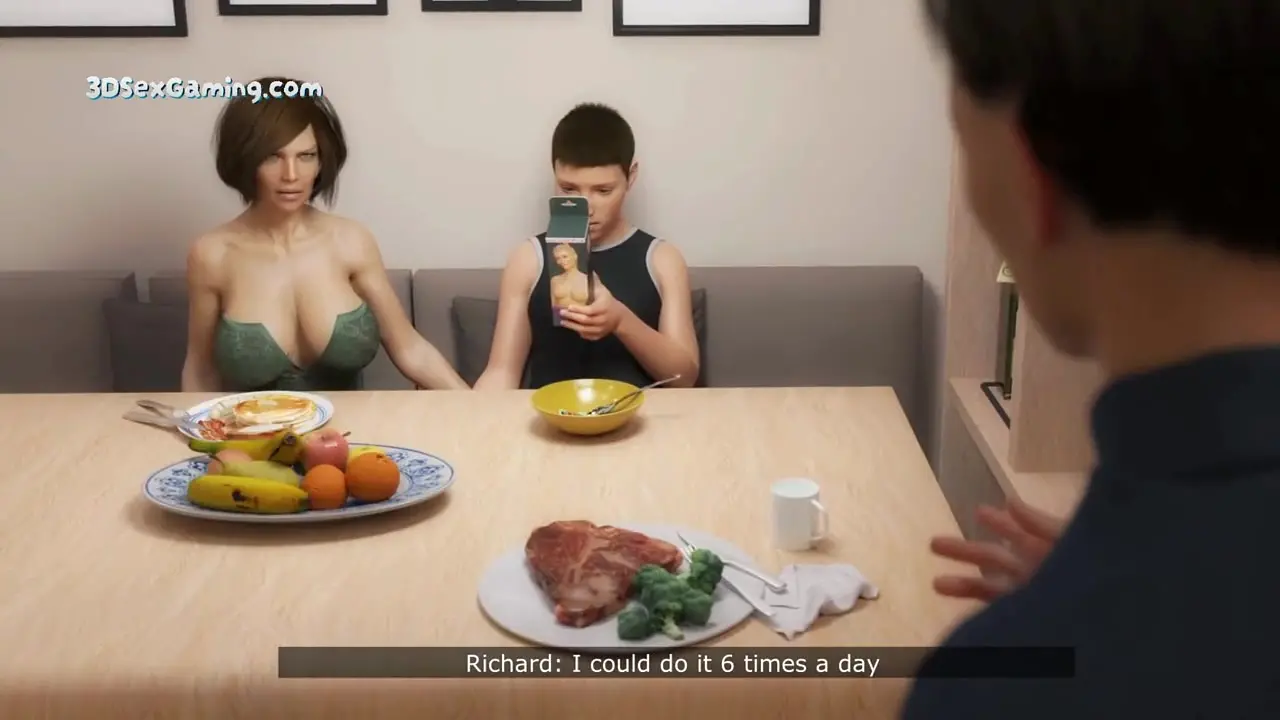 In this hot 3D anime scene, a young teen's hard cock is grabbed and stroked by his stepmom's wet, shaved pussy. She gives him a handjob and deepthroat blowjob, making him cum all over her face. She then humps him doggystyle, taking his entire length and getting covered in his big as load.