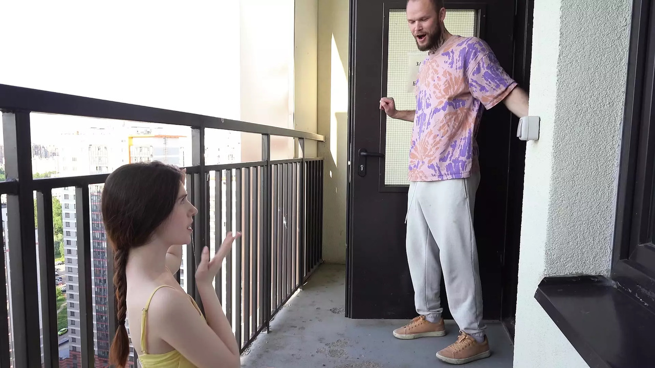Tight pussy girl caught and seduced in front of the elevator