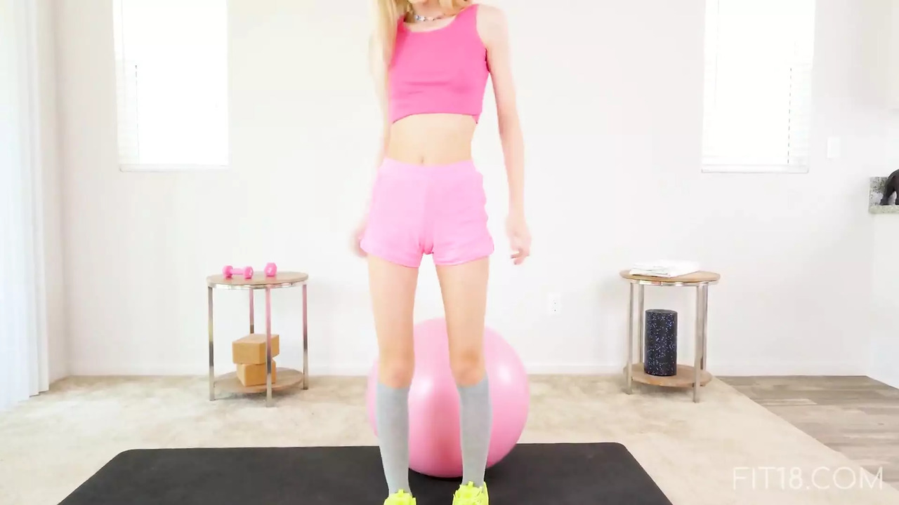 Thin 88lb teen Chanel dreams of becoming a fitness model. She shows off her toned body and perky tits. She receives her soaking pussy fucked and pounded until she cums.