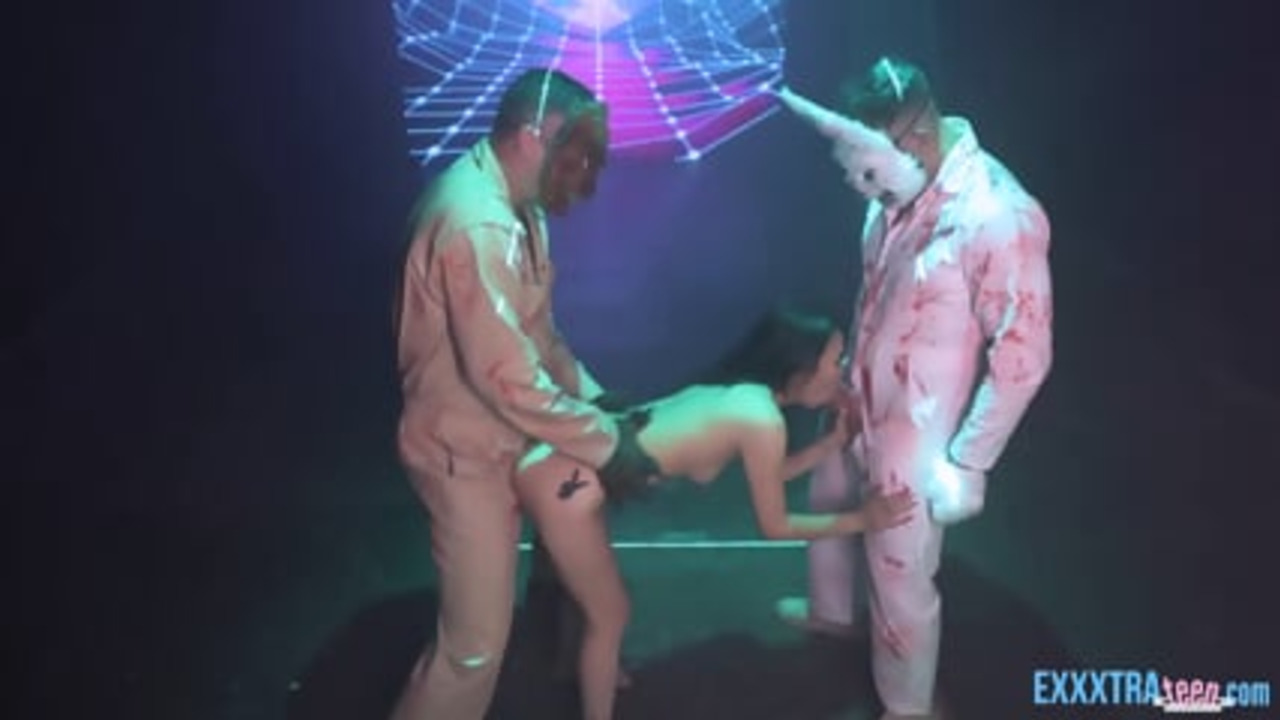 Petite teen Asia Lee gets spitroasted after giving deepth...