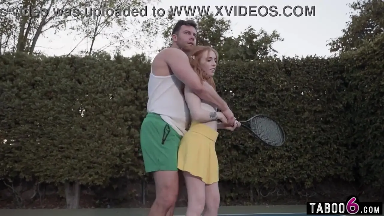A petite, slim, and tiny-titted redhead teen slut receives her tennis lesson turned into a hardcore fucking session. She deep-throats his cock in an upskirt moment then takes a rough pounding. He blows his load on her face before she rides him hard.